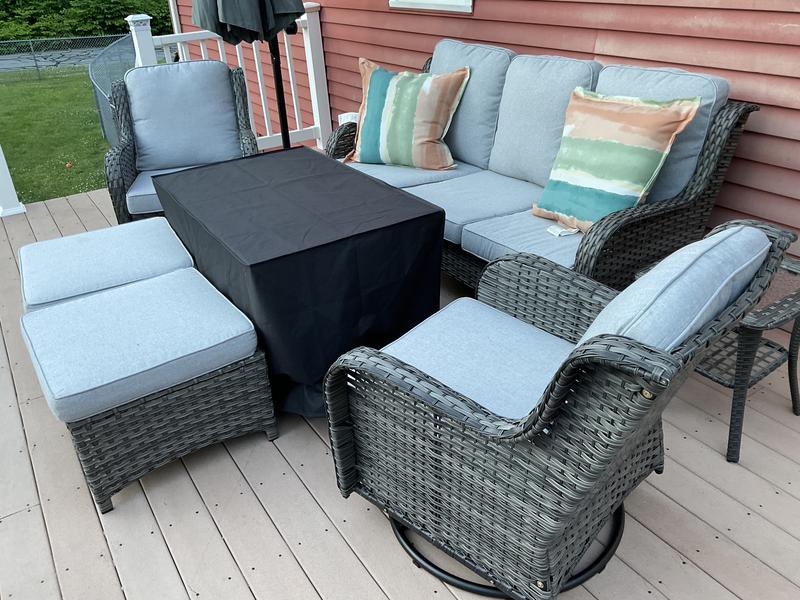 Pouuin 7 Piece Wicker Patio Sofa Conversation Set with Blue Cushions