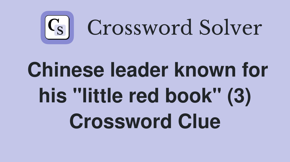 Chinese leader known for his quot little red book quot (3) Crossword Clue