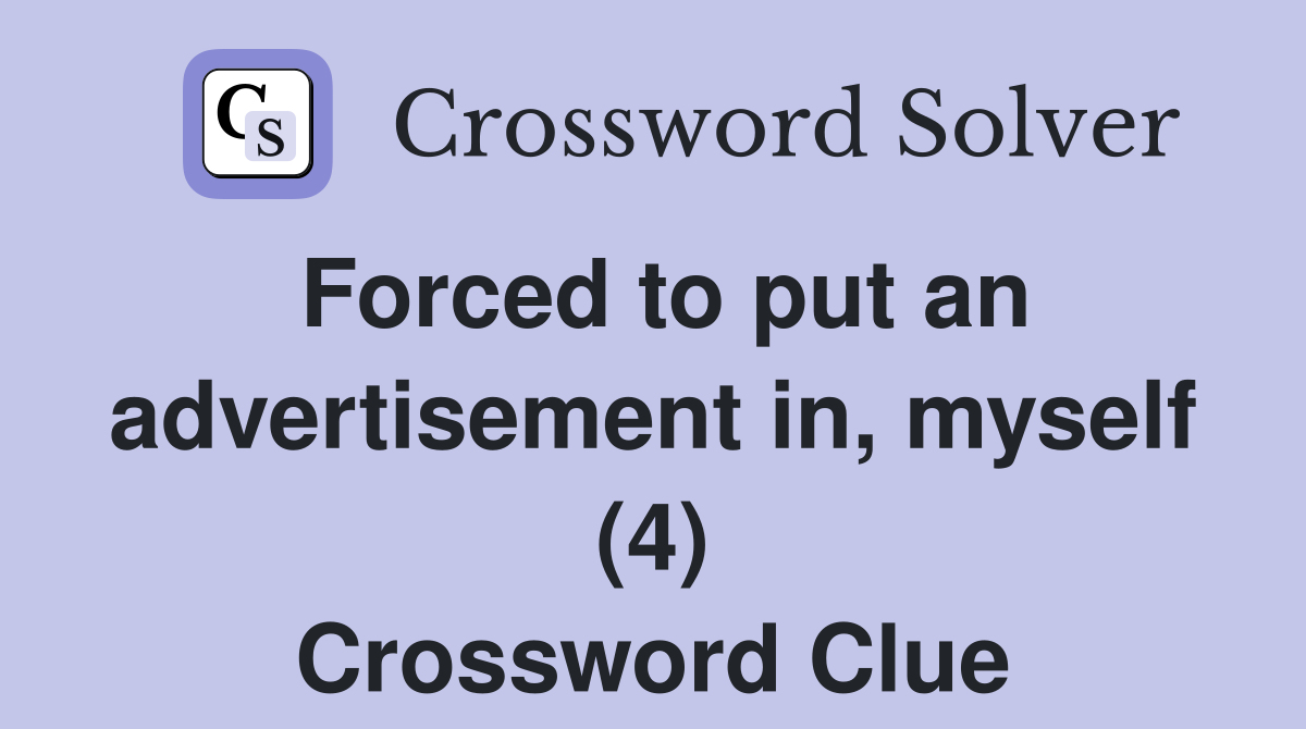 Forced to put an advertisement in myself (4) Crossword Clue Answers