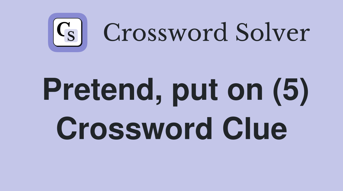Pretend put on (5) Crossword Clue Answers Crossword Solver