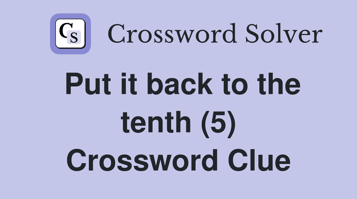 Put it back to the tenth (5) Crossword Clue Answers Crossword Solver