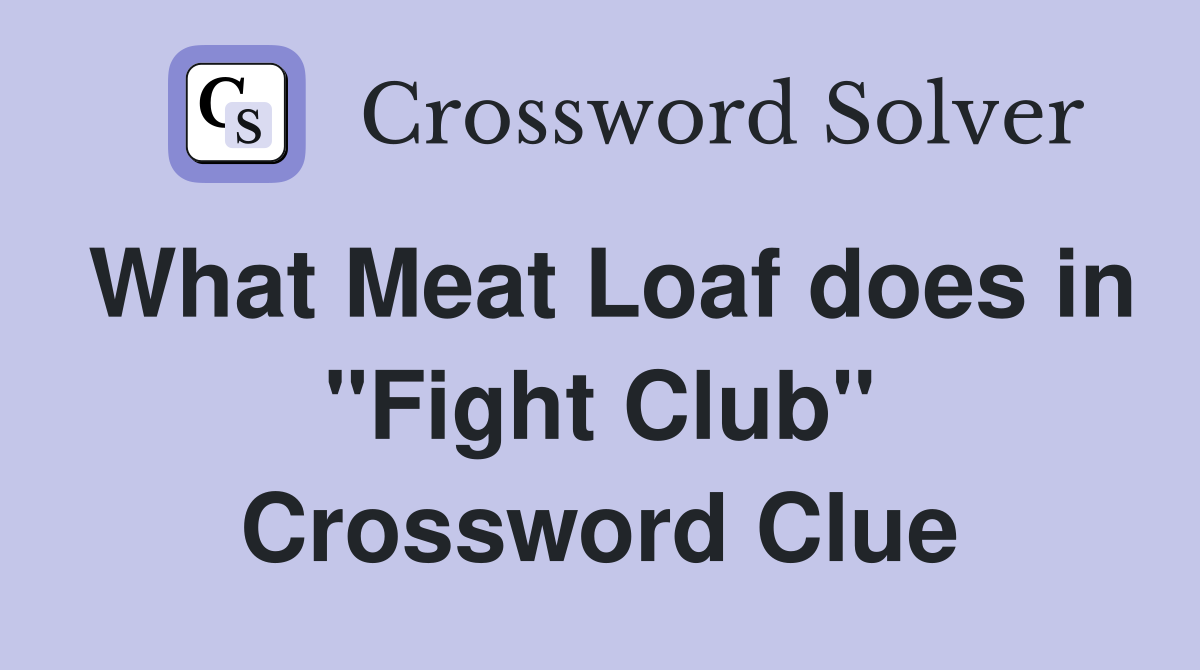 What Meat Loaf does in quot Fight Club quot Crossword Clue Answers