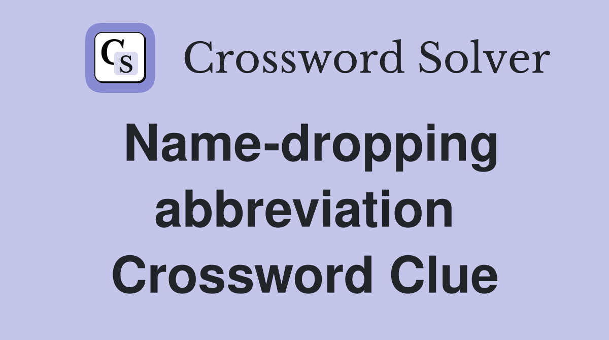 Name dropping abbreviation Crossword Clue Answers Crossword Solver