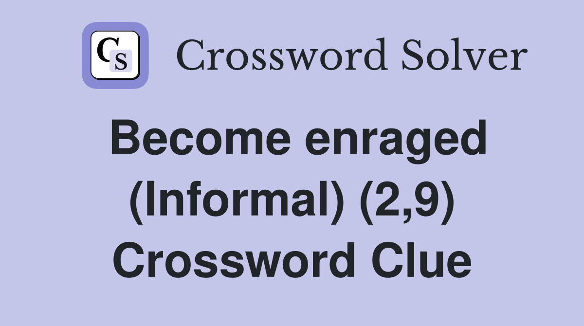 Become enraged (Informal) (2 9) Crossword Clue Answers Crossword Solver