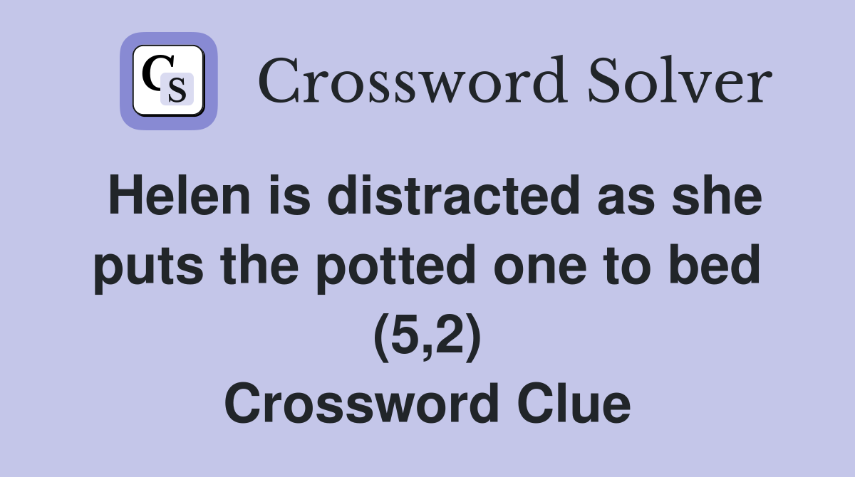 Helen is distracted as she puts the potted one to bed (5 2) Crossword