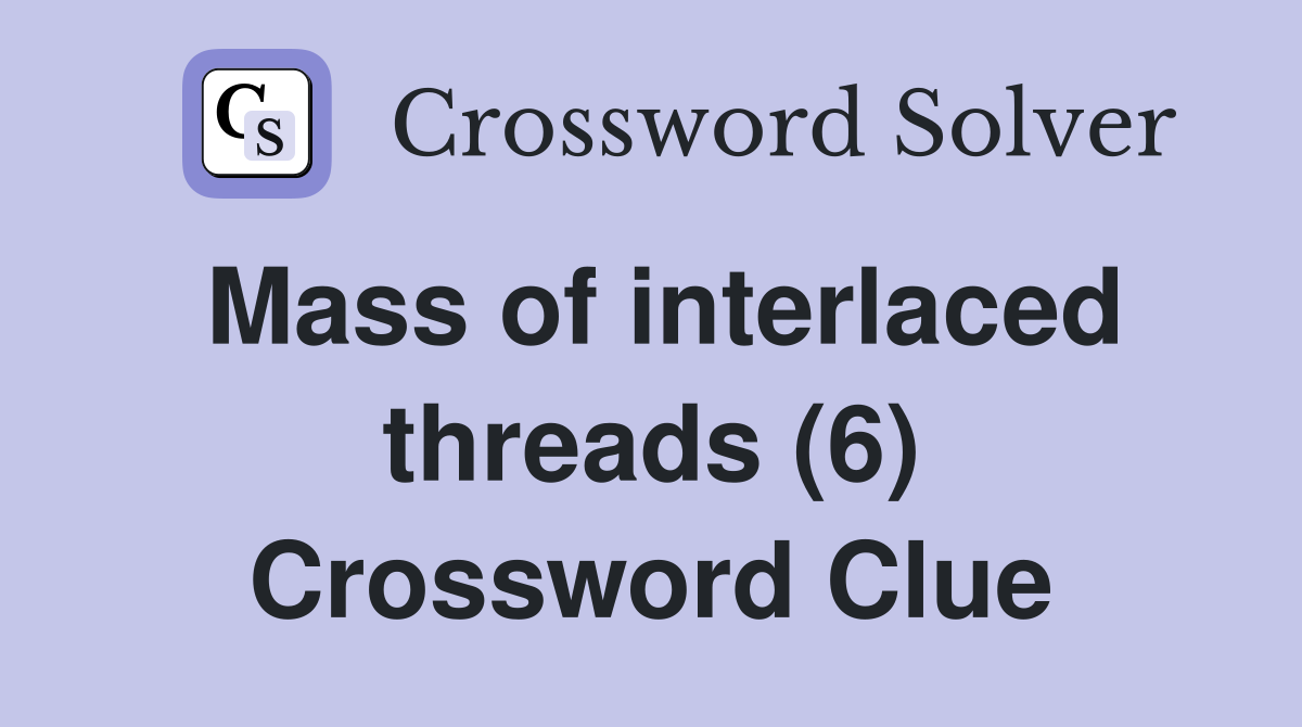 Mass of interlaced threads (6) Crossword Clue Answers Crossword Solver