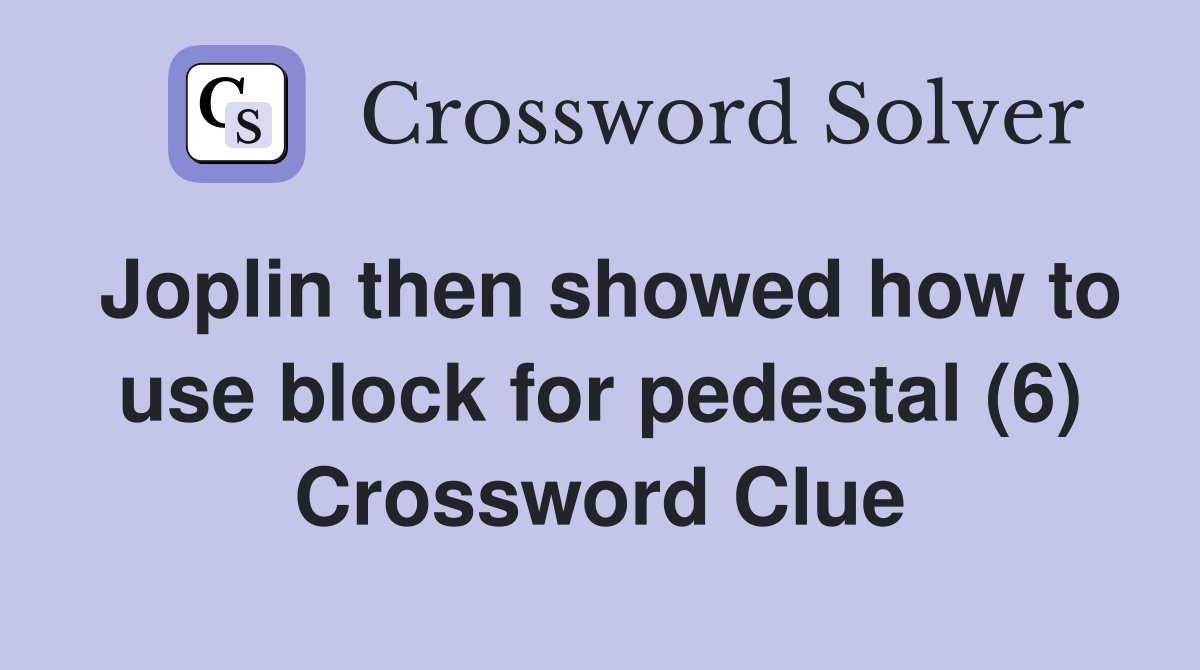Joplin then showed how to use block for pedestal (6) Crossword Clue