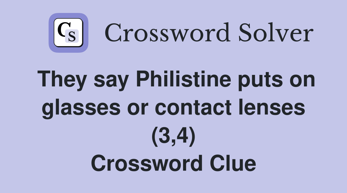 They say Philistine puts on glasses or contact lenses (3 4) Crossword