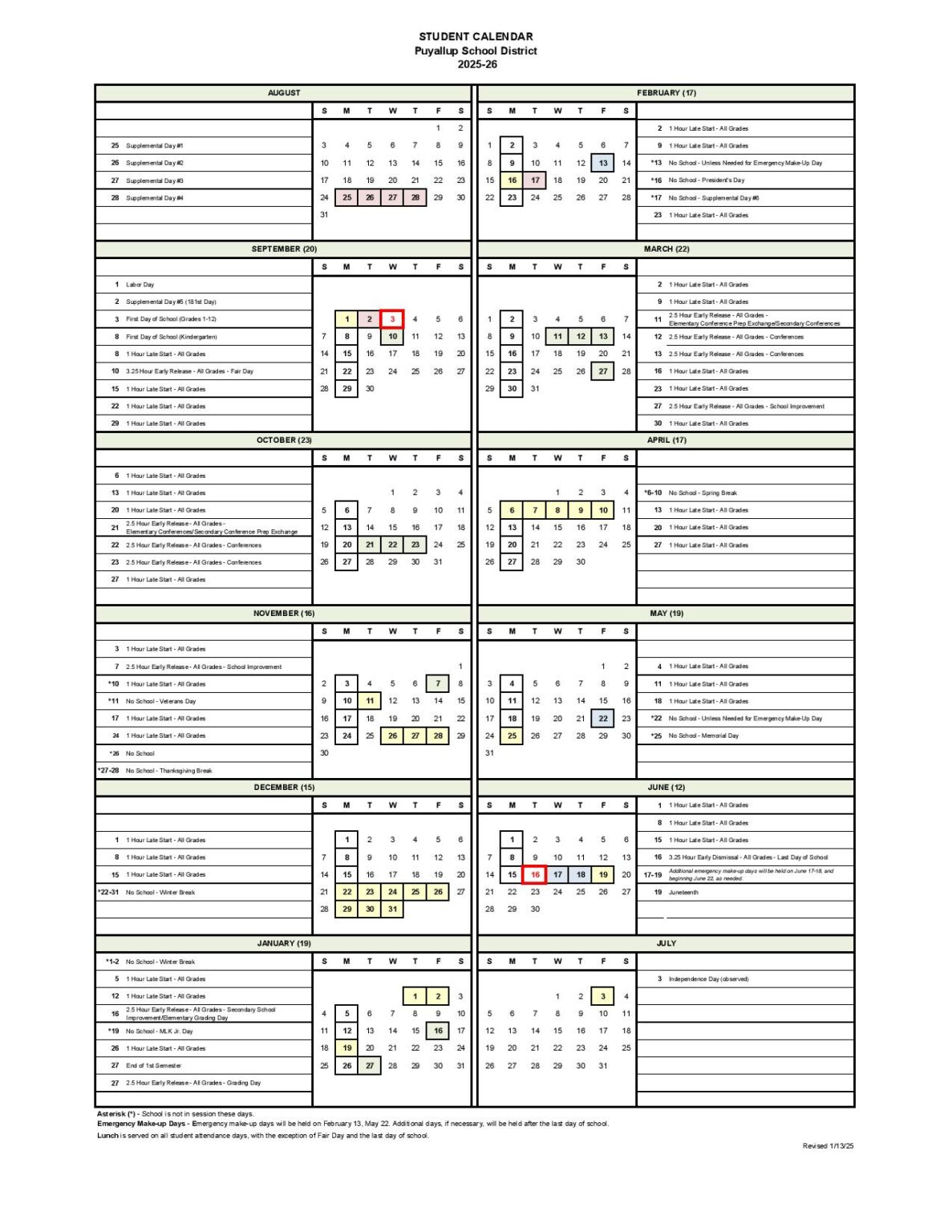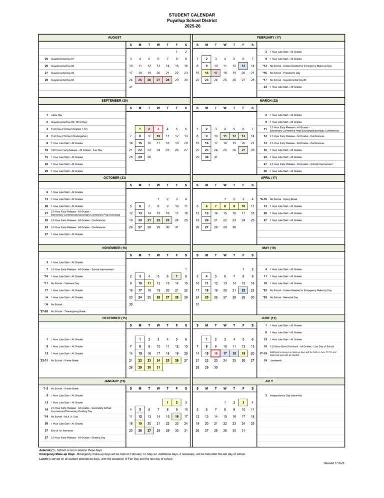 Puyallup School District Calendar 25 26 Revised PDF EduCounty