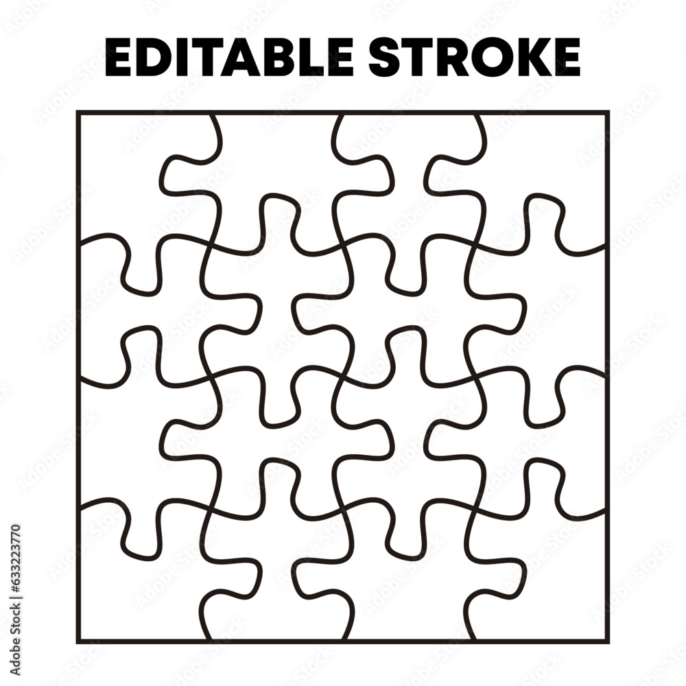 16 jigsaw puzzle outline template Editable stroke vector isolated on