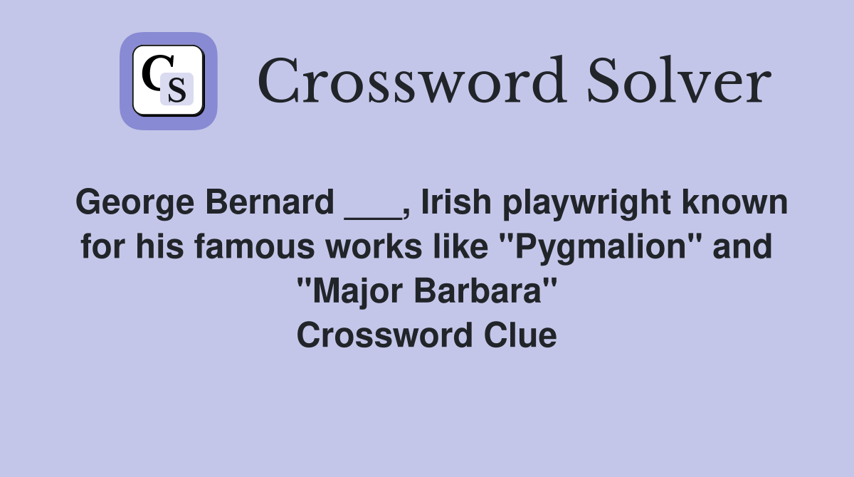 76 quot Pygmalion quot playwright Crossword Clue Answers Crossword Solver