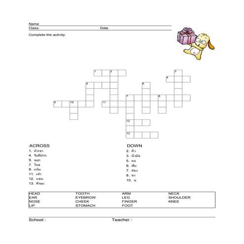 crossword parts of the body PDF