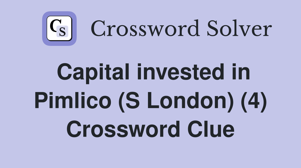 Capital invested in Pimlico (S London) (4) Crossword Clue Answers