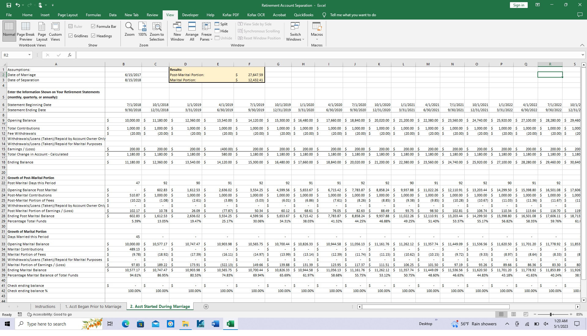 Retirement Account Separation Calculator 401(k) Divorce QDRO Divorce