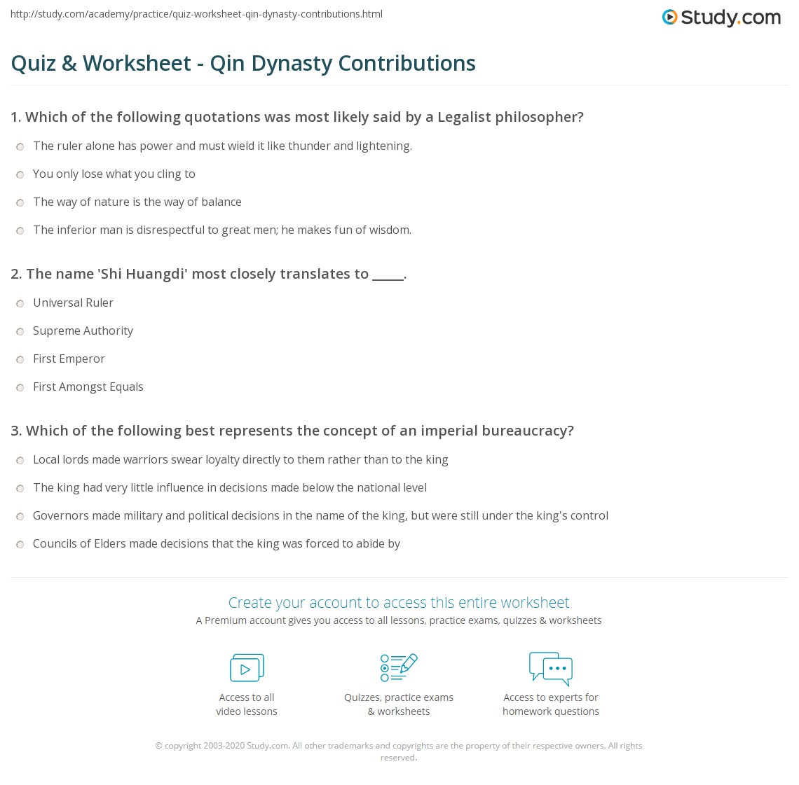 Quiz Worksheet Qin Dynasty Contributions Study com