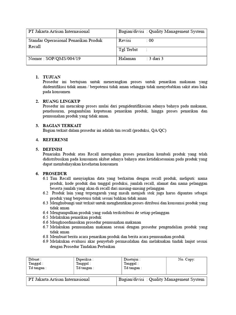 QMS SOP Penarikan Produk PDF