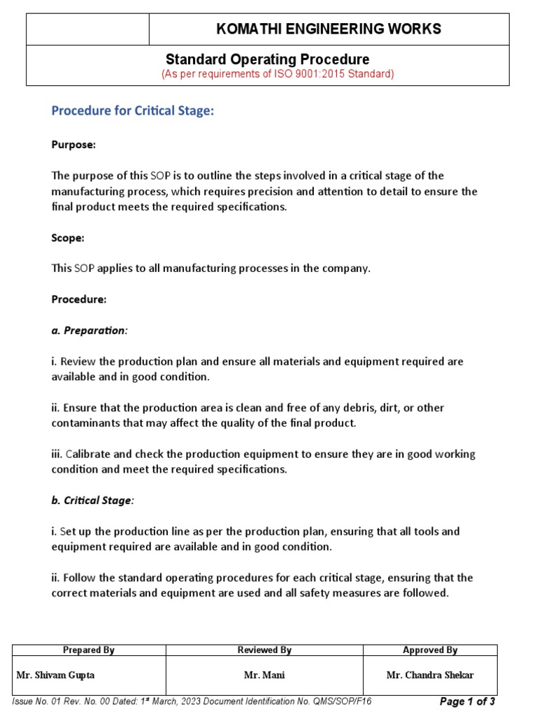 QMS SOP F16 SOP for Critical Stage PDF