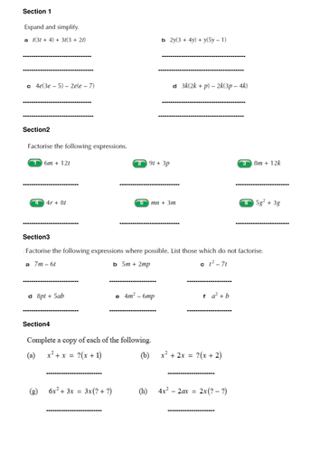 KS3 and KS4 Factorising Worksheets Algebraic expressions Algebra