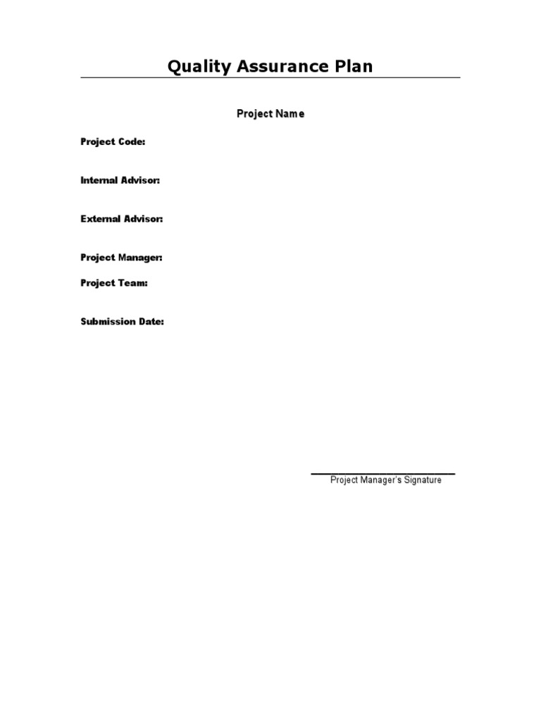 Free Operations Project Quality Assurance Plan Template Edit Online
