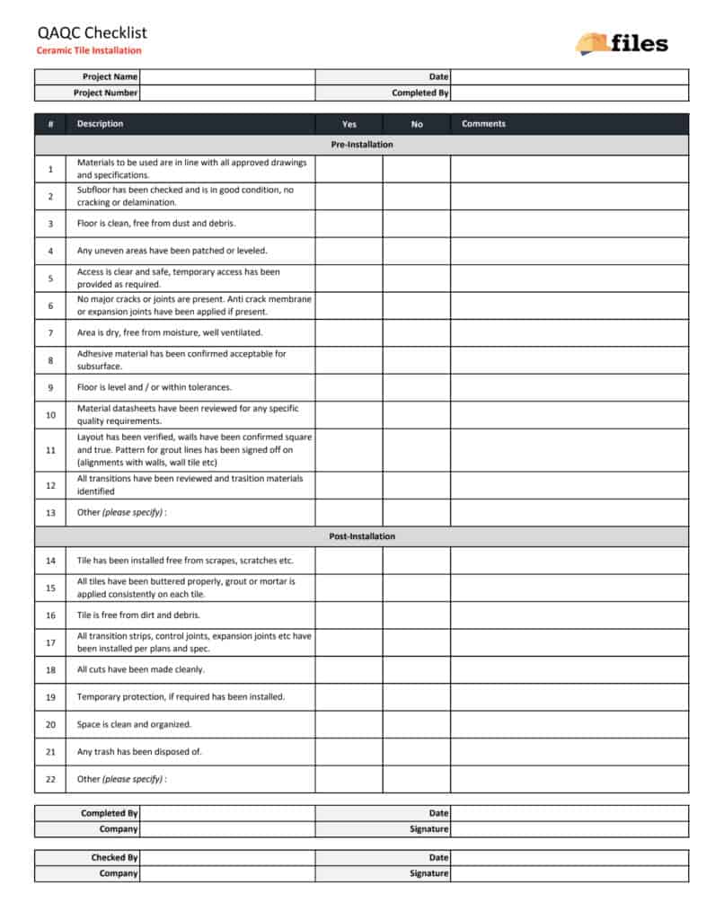 QAQC Checklist Ceramic Tile (Flooring) Construction Files