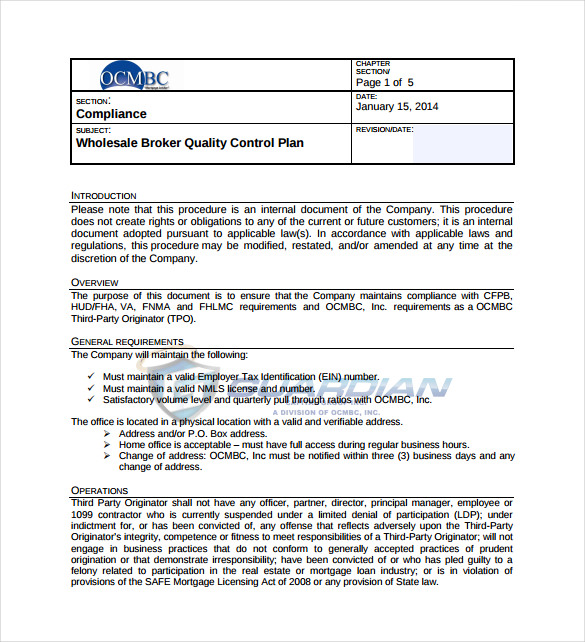 FREE 8 Mortgage Broker Quality Control Plan Samples in MS Word