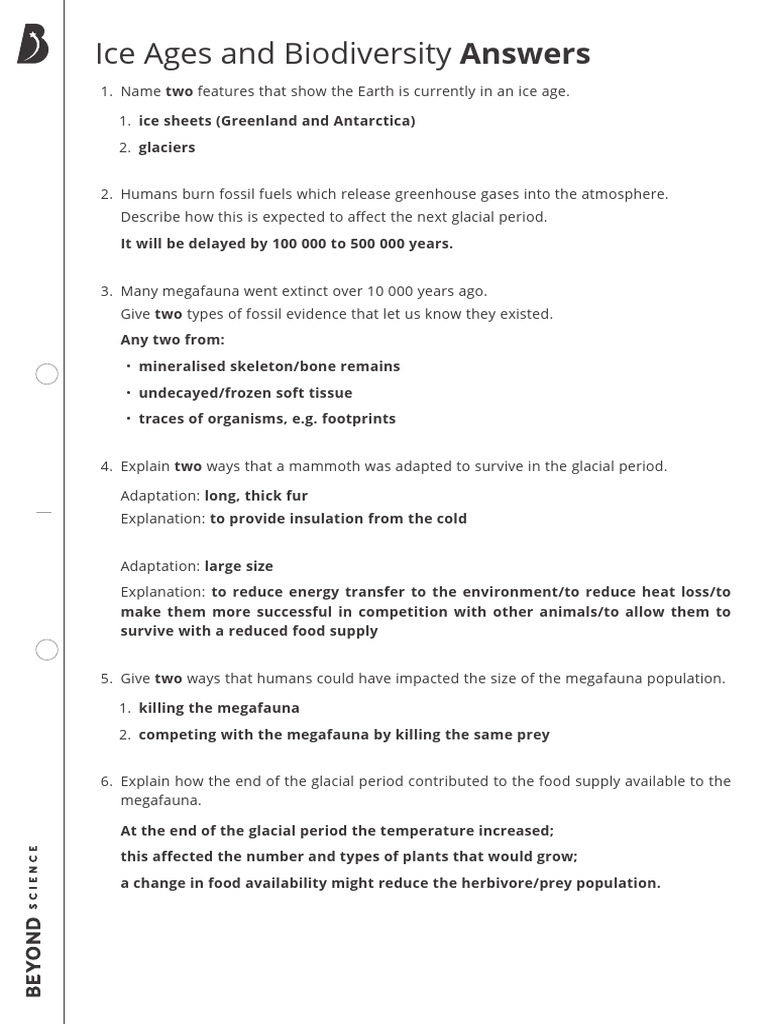 Ice Ages and Biodiversity Worksheet Support Answers PDF