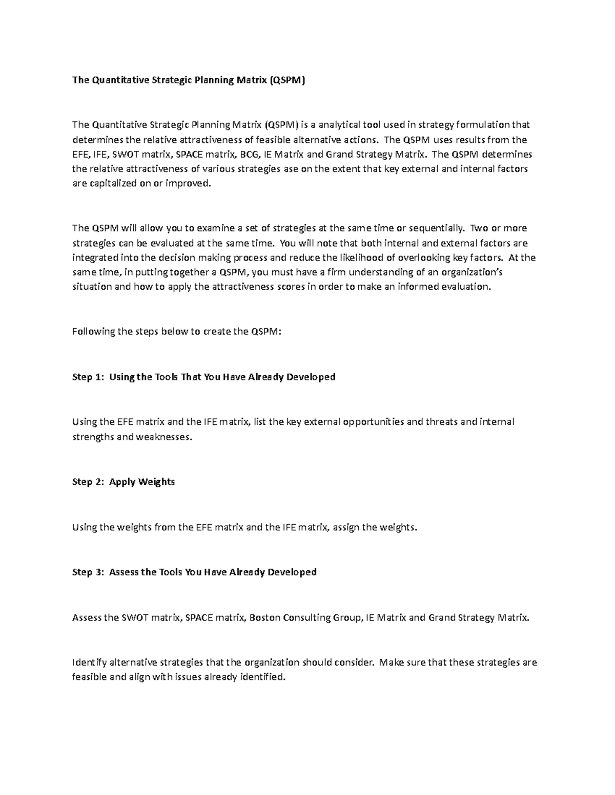 QSPM Explained: Strategic Planning Matrix Its Applications Studocu