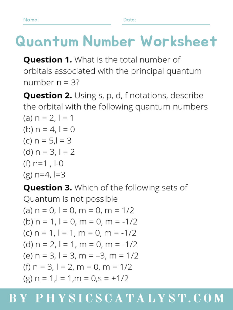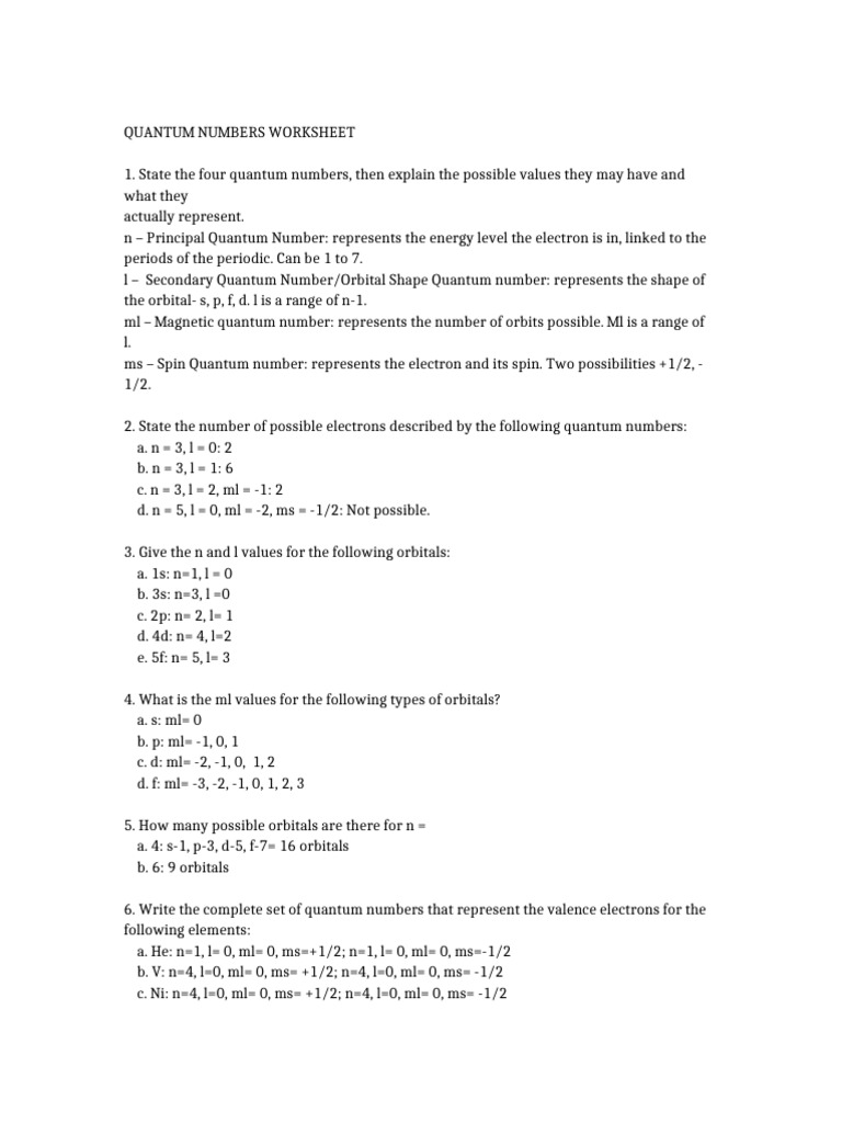 Quantum Numbers Practice Worksheet Printable And Enjoyable Learning