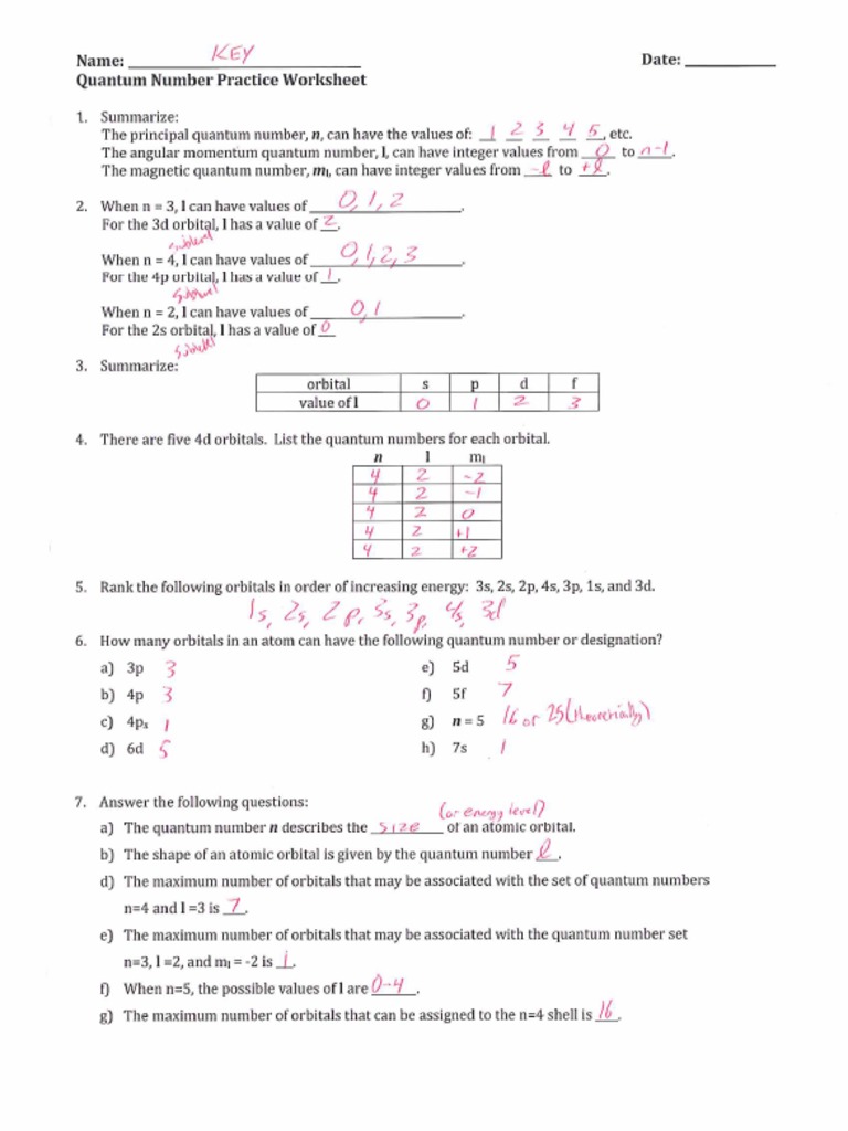 Quantum Numbers Practice Worksheet Printable And Enjoyable Learning