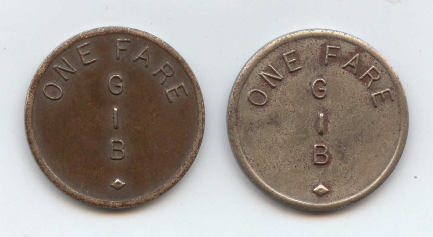 Exonumia Pair of One Fare GIB Tokens (#9948) Void after one year 20MM