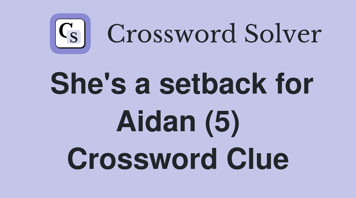 She #39 s a setback for Aidan (5) Crossword Clue Answers Crossword Solver