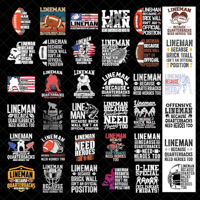 Lineman Football PNG Bundle Brick Wall Quote Sublimation File