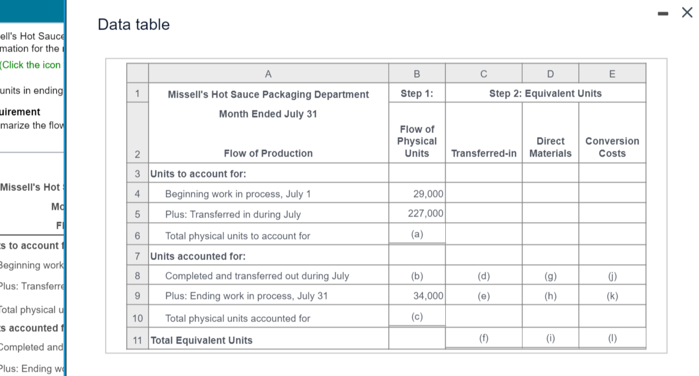 Solved ell #39 s Hot Sauce mation for the Click the icon units Chegg com
