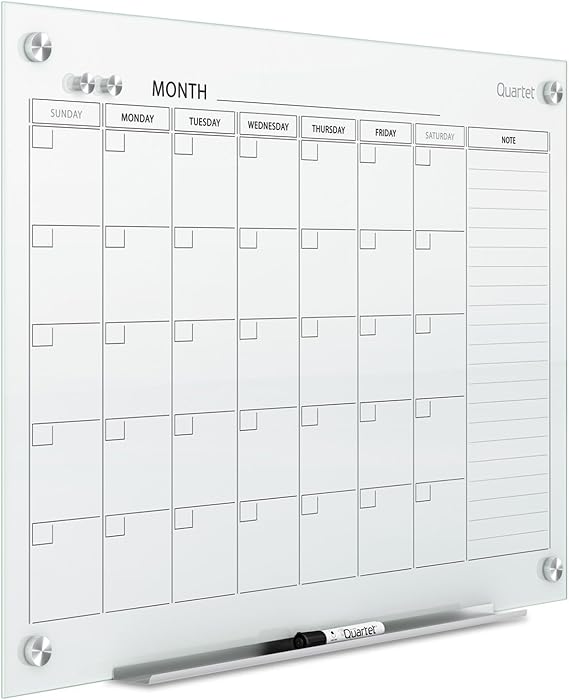 Quartet Magnetic Whiteboard Calendar Glass Dry Erase Planner