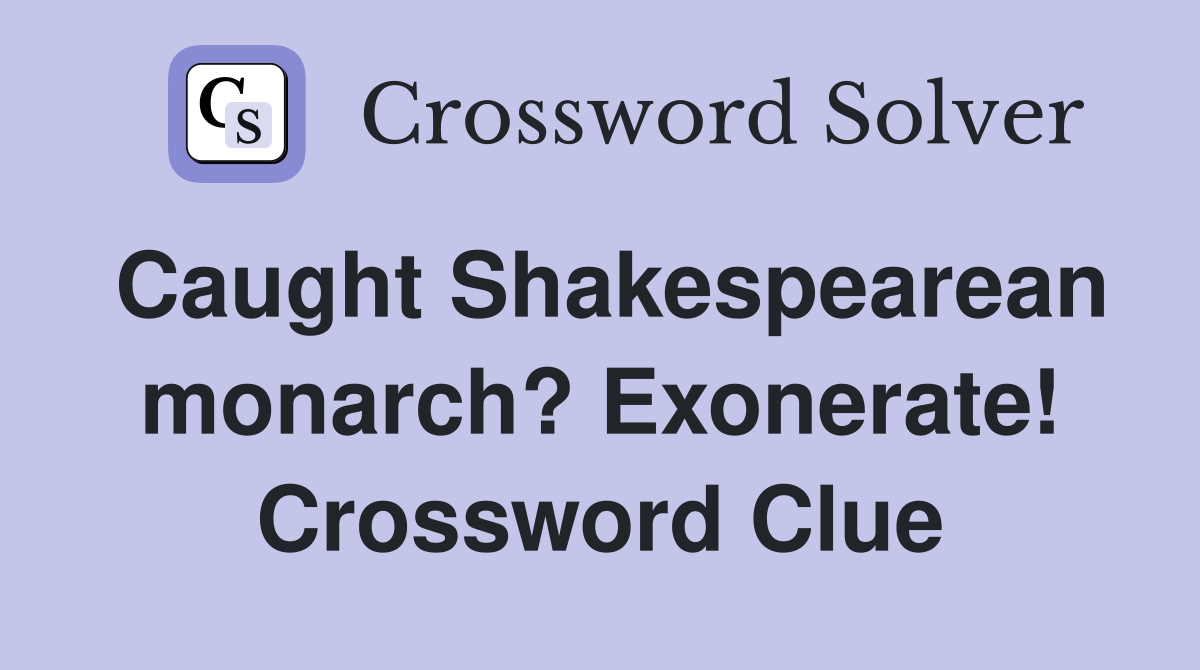 Caught Shakespearean monarch? Exonerate Crossword Clue Answers