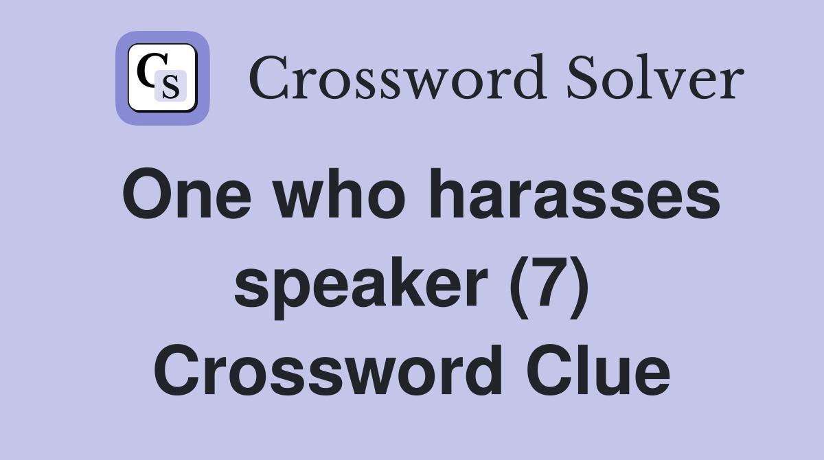 One who harasses speaker (7) Crossword Clue Answers Crossword Solver