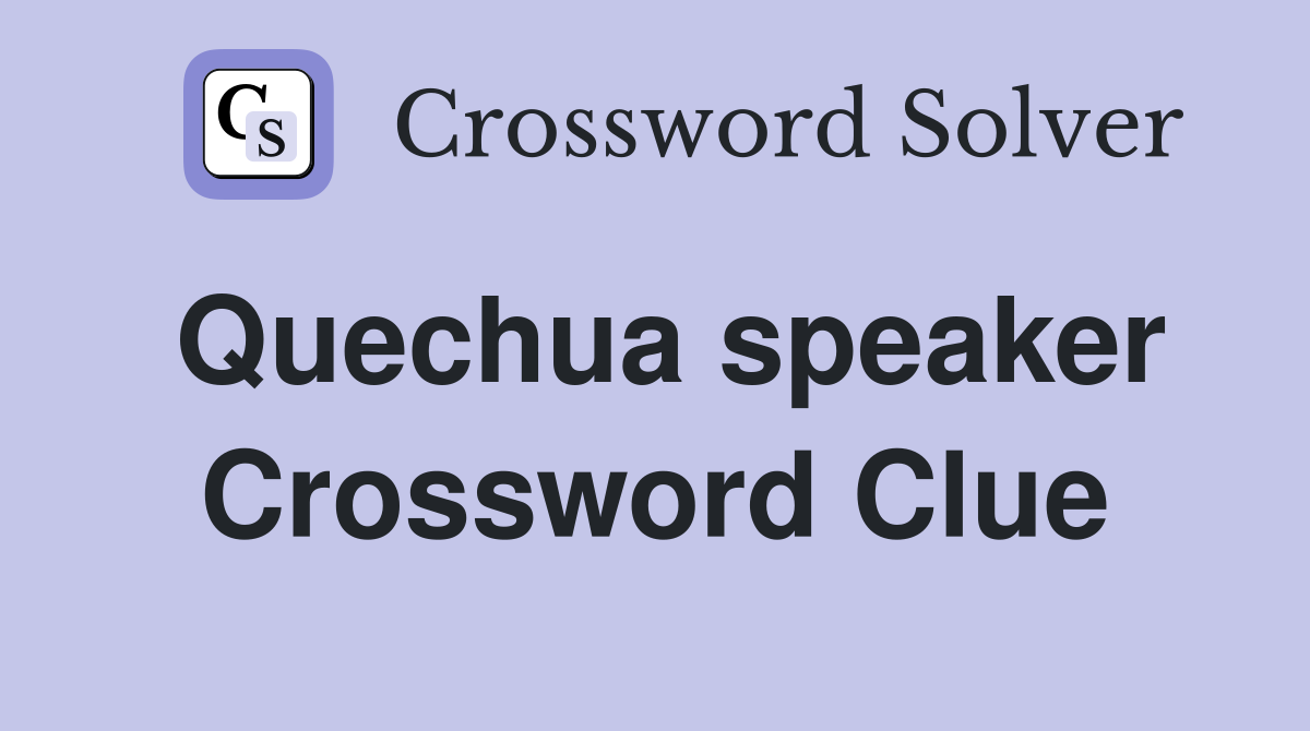 Quechua speaker Crossword Clue Answers Crossword Solver