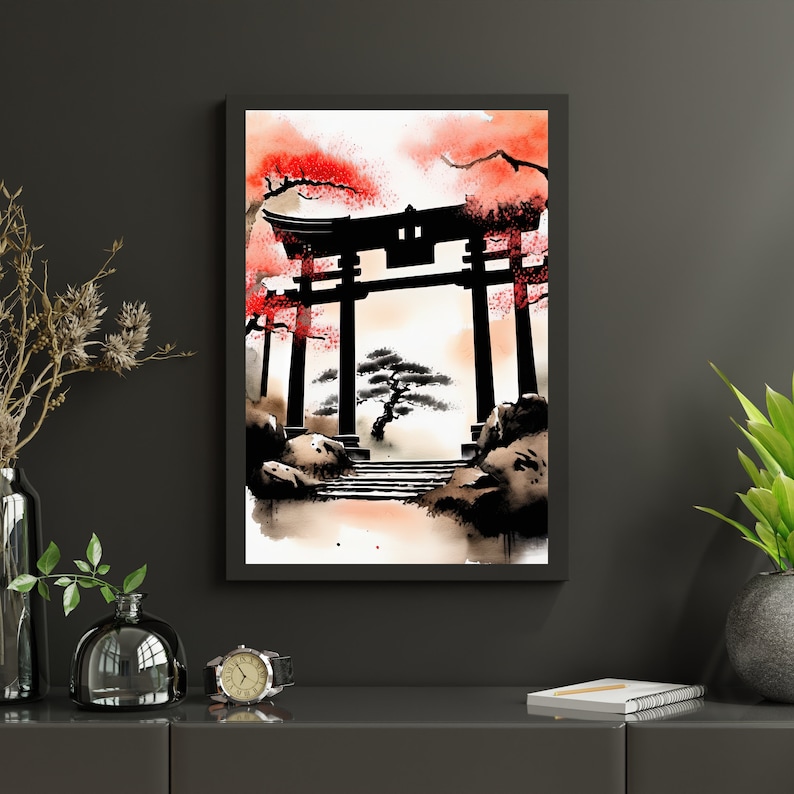 Japanese Torii Gate Watercolor Painting 1 Downloadable JPEG Wall Art