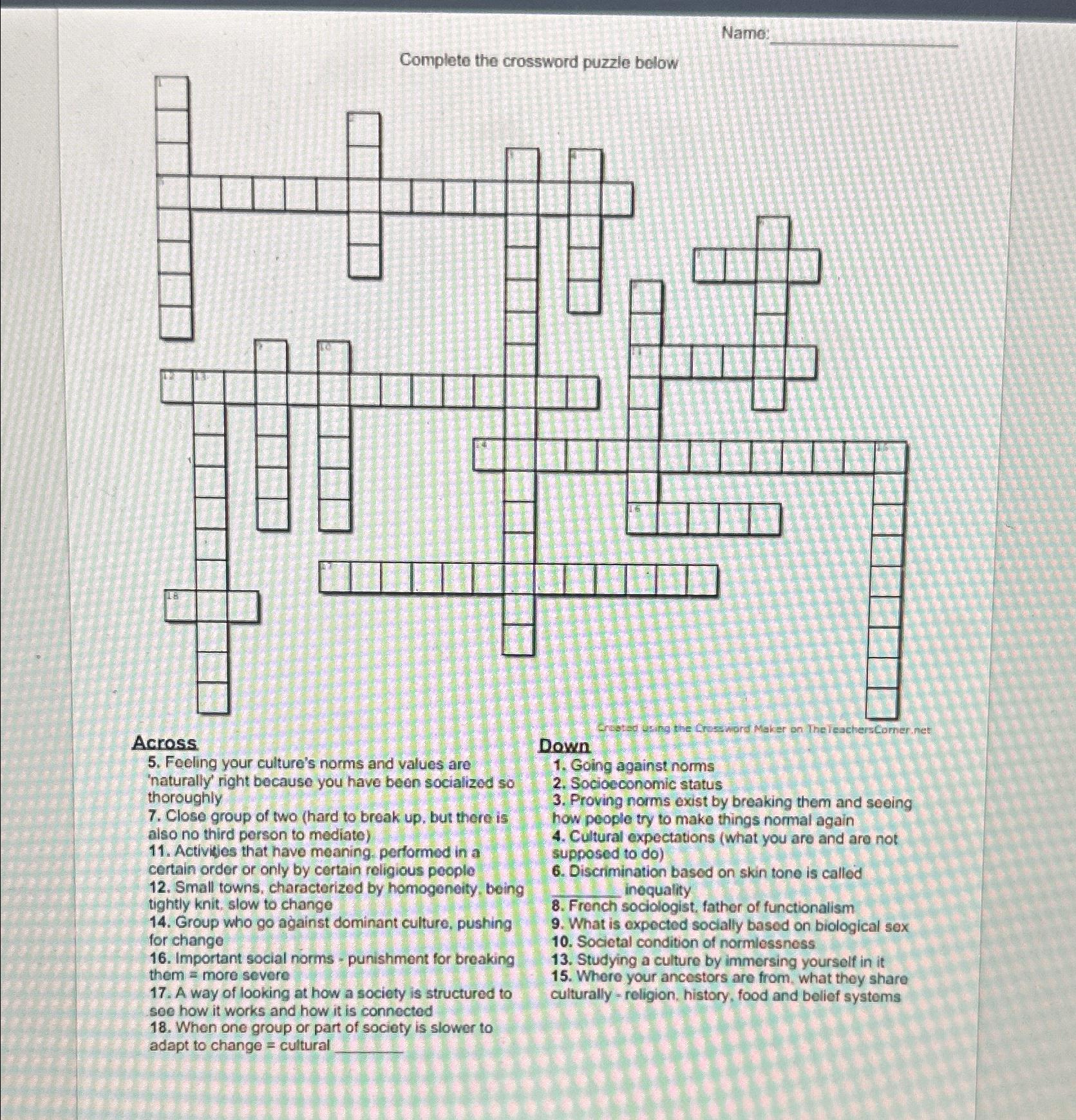 Solved Name:Complete the crossword puzzle belowAcross5 Chegg com
