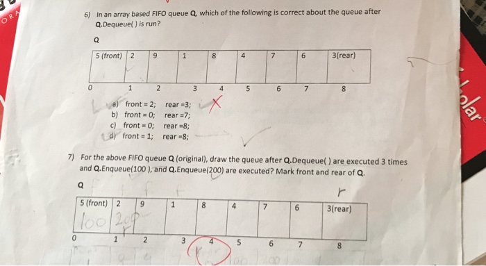 Solved In an array based FIFO queue Q which of the following Chegg com