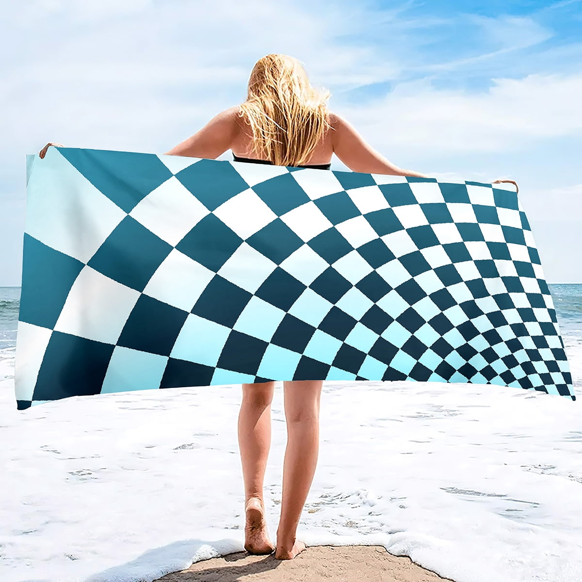 Black White Checkered Flag Microfiber Beach Towels Oversized Quick Dry