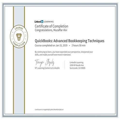 Certificate ofcompletion quickbooks advanced bookkeeping techniques PDF