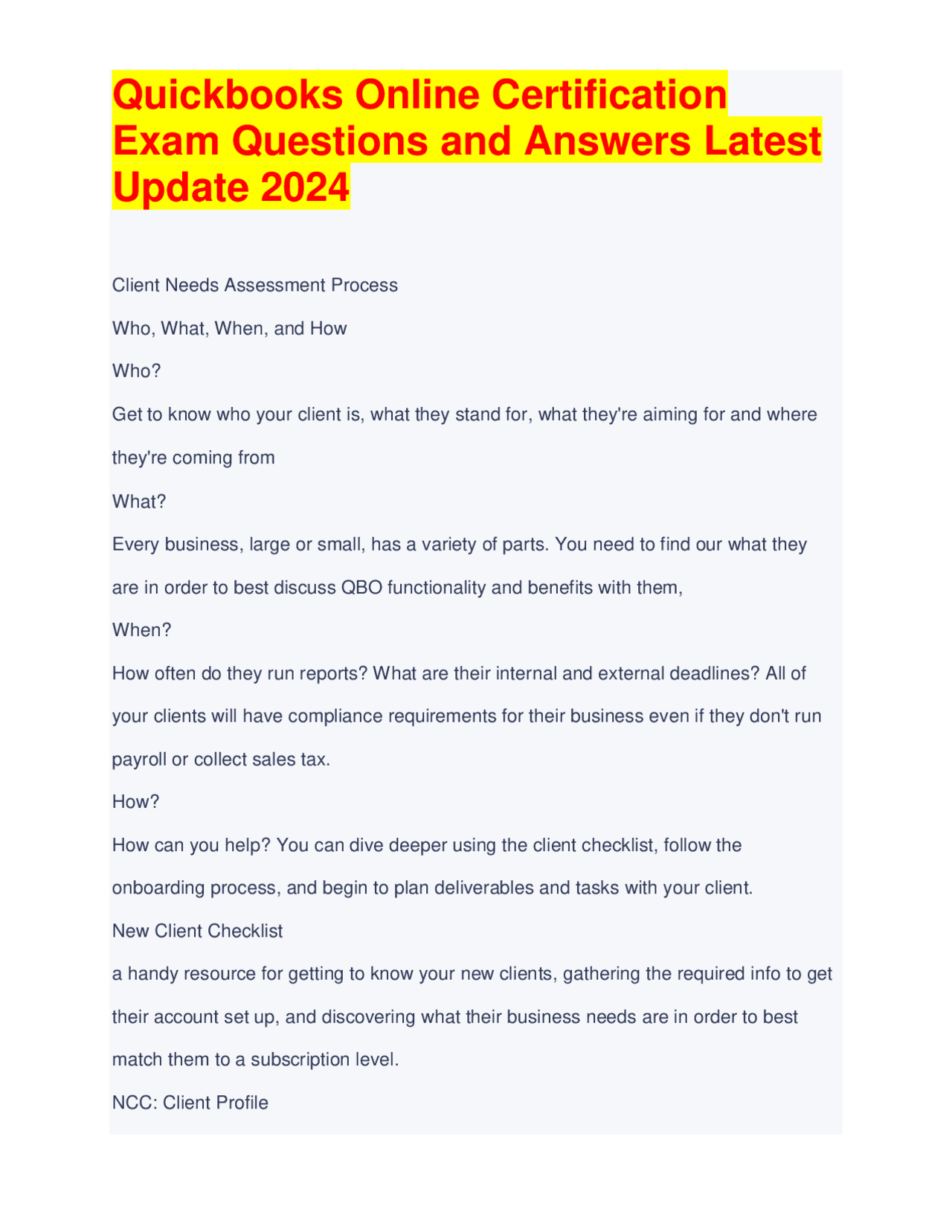 QuickBooks Online Certification Test Study Guide Exam With Solved