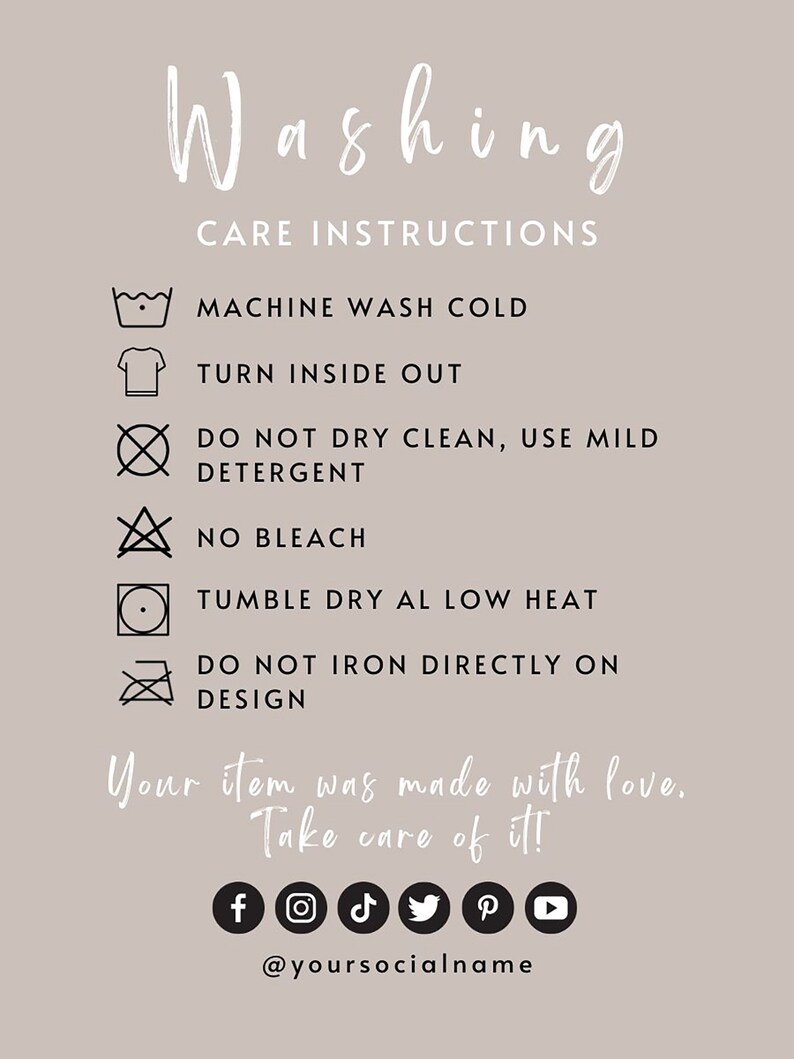 Editable Washing Instructions Canva Template Minimal Printable Apparel