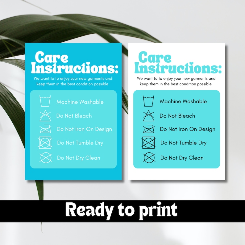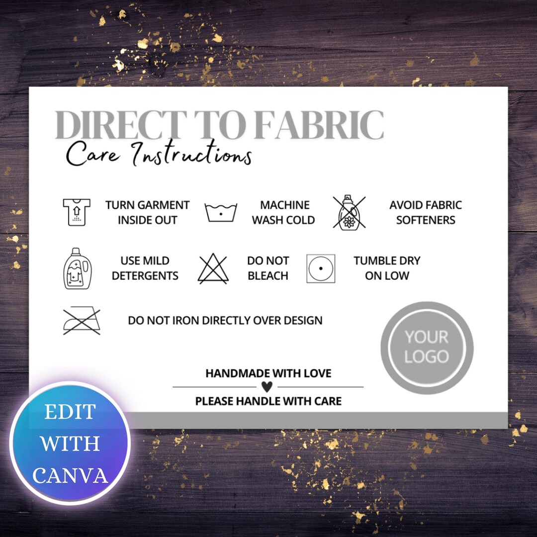 DTF Care Instructions Dtf Apparel Card Digital Download Customizable
