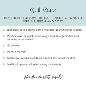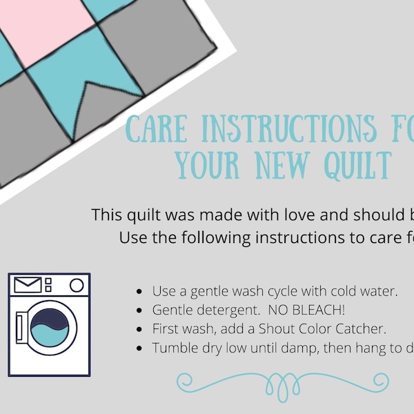 Handmade Quilt Care Card / Printable Quilt Wash Guide / Quilt Label