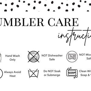 Tumbler Care Instructions Insert Cards Black Polka Dot Drinking Tumbler