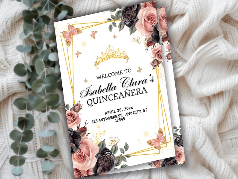 Black and Gold Quinceañera Program Template Editable Order of Events