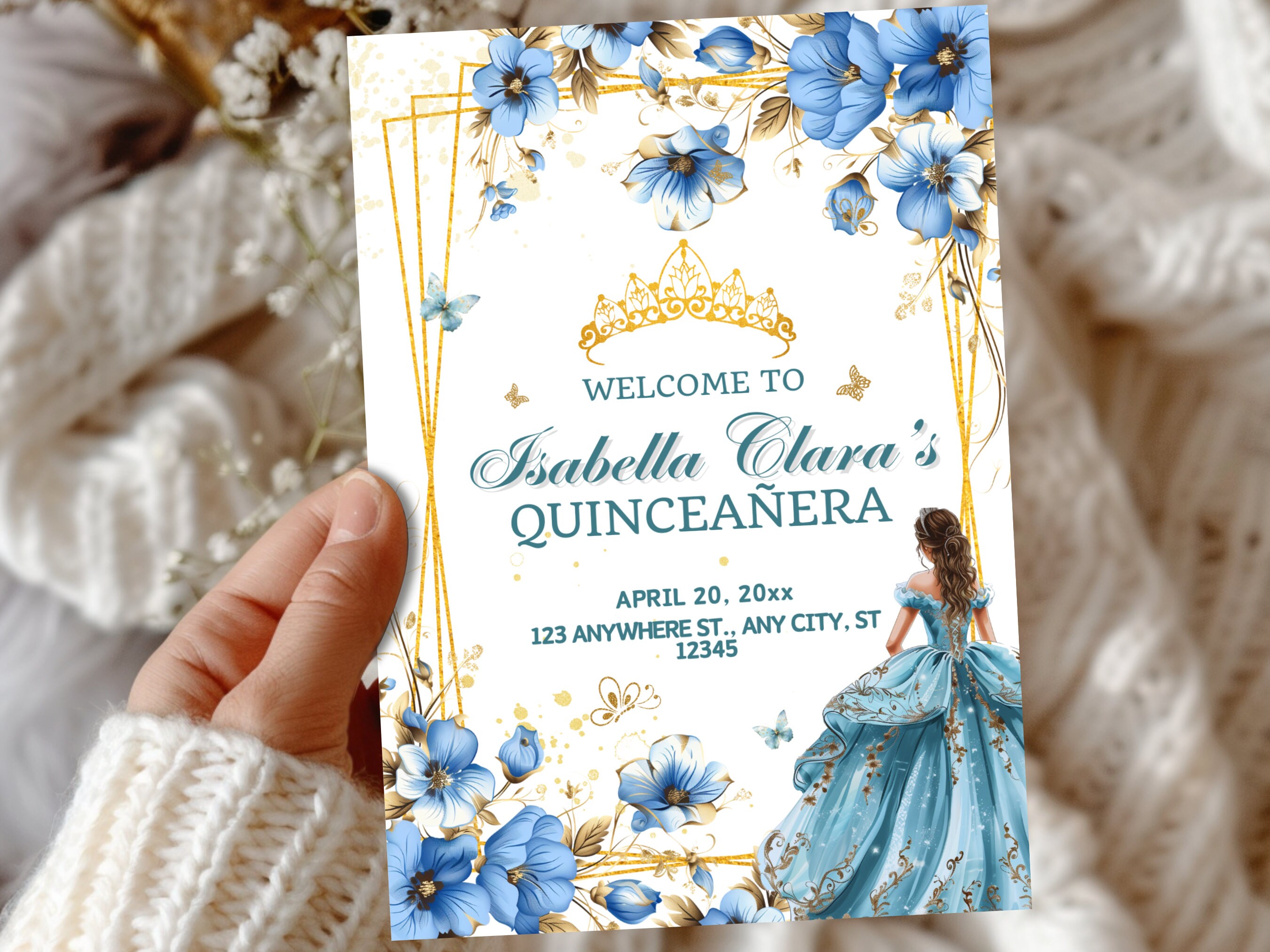 EDITABLE Program Template Elegant Sky Blue Floral Quinceanera Program