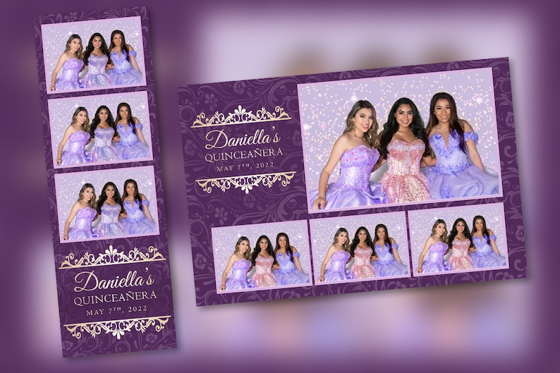 Quinceañera Photo Booth Template Royal Purple PSD PNG Easy Etsy